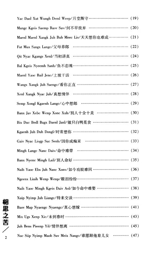 书收录了传唱于侗族南部地区的经典口传歌谣,为情歌类口头文学作品。多用于青春时期的青年男女行歌坐月时及有情人相会等场合,属于恋爱中的年轻人之间的相思语言和绵绵情话。歌词寓情于哲理之中,随意性较大,但逻辑性较强,相互连贯,淋漓尽致地体现出侗族民歌的文学风采。