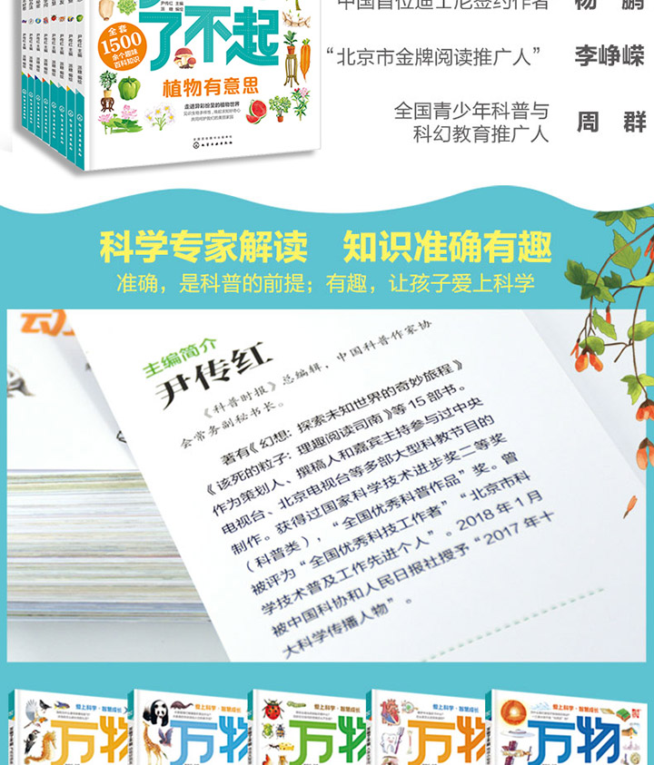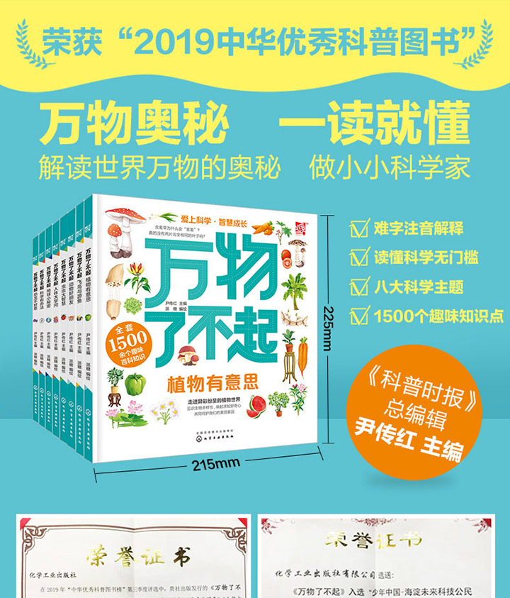 1.小朋友们总会对身边的一切充满好奇,尤其对科学世界充满了想象和求知欲。其实科学并不遥远,《万物了不起》这套书就是从孩子感兴趣的万事万物出发,通过细腻生动的绘画和文字将科学的奥秘呈现出来,让孩子们主动探索和发现自然科学,邂逅有趣的万物,感受不一样的世界。