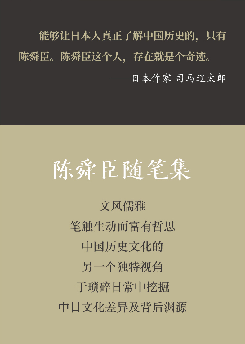 陈舜臣(1924—2015),以创造推理小说、中国历史小说叱咤日本文坛五十余载,但是其文化随笔的价值却常常被忽略。他善于挖掘中日文化在琐碎日常中的诸多差异以及背后深刻的渊源,并将其用大众化的语言表达出来,文风儒雅,笔触生动而又富有哲思。其随笔展现了不同视角及不同文化观照下的中国历史,在中国文化的传播和中日文化交流方面起到了不可低估的作用。