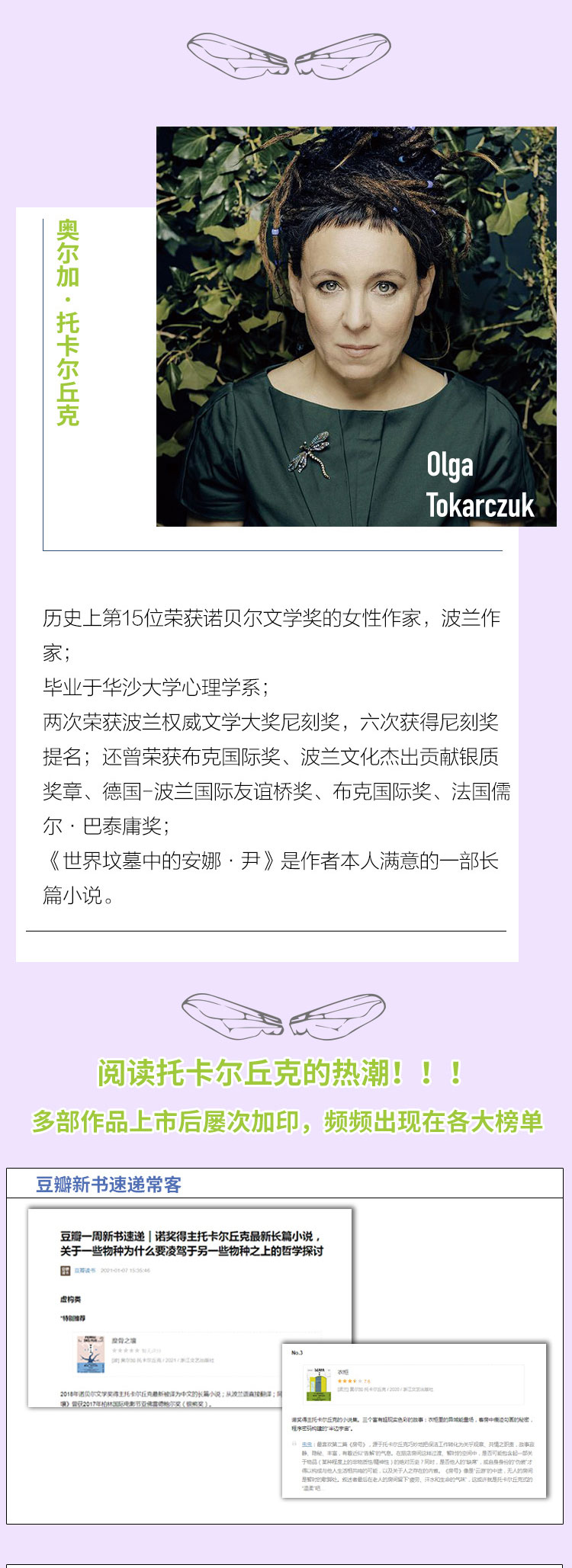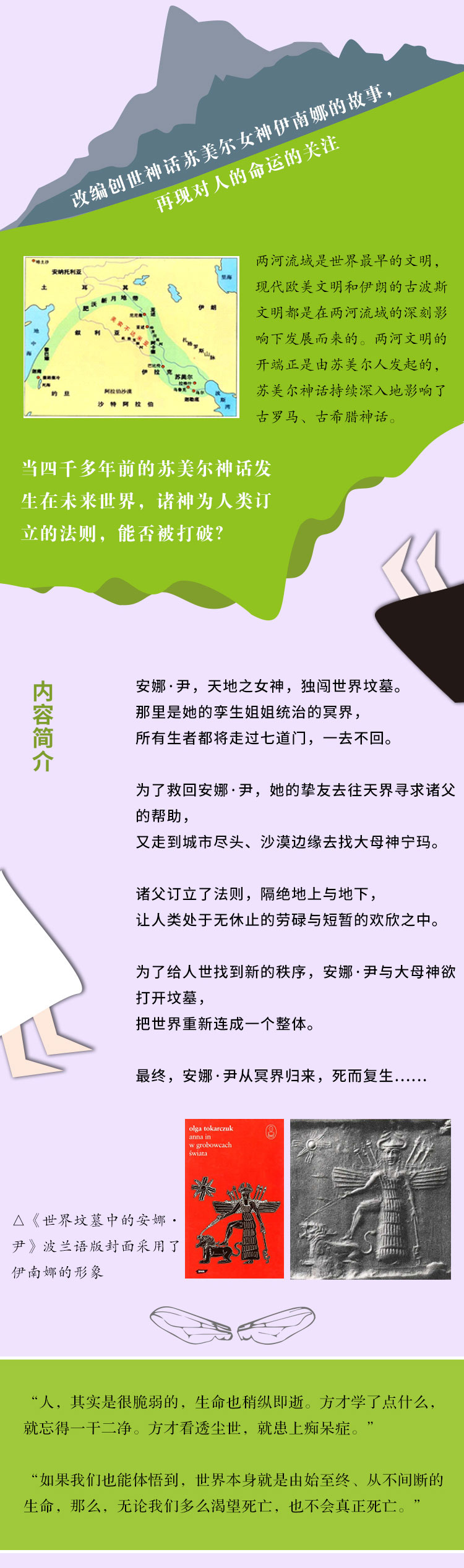 《世界坟墓中的安娜·尹》是诺贝尔文学奖得主托卡尔丘克新译为中文的长篇小说。小说将四千多年前的苏美尔神话放置在未来世界,投注了对人类世界的秩序、公平、自由、爱的思考。