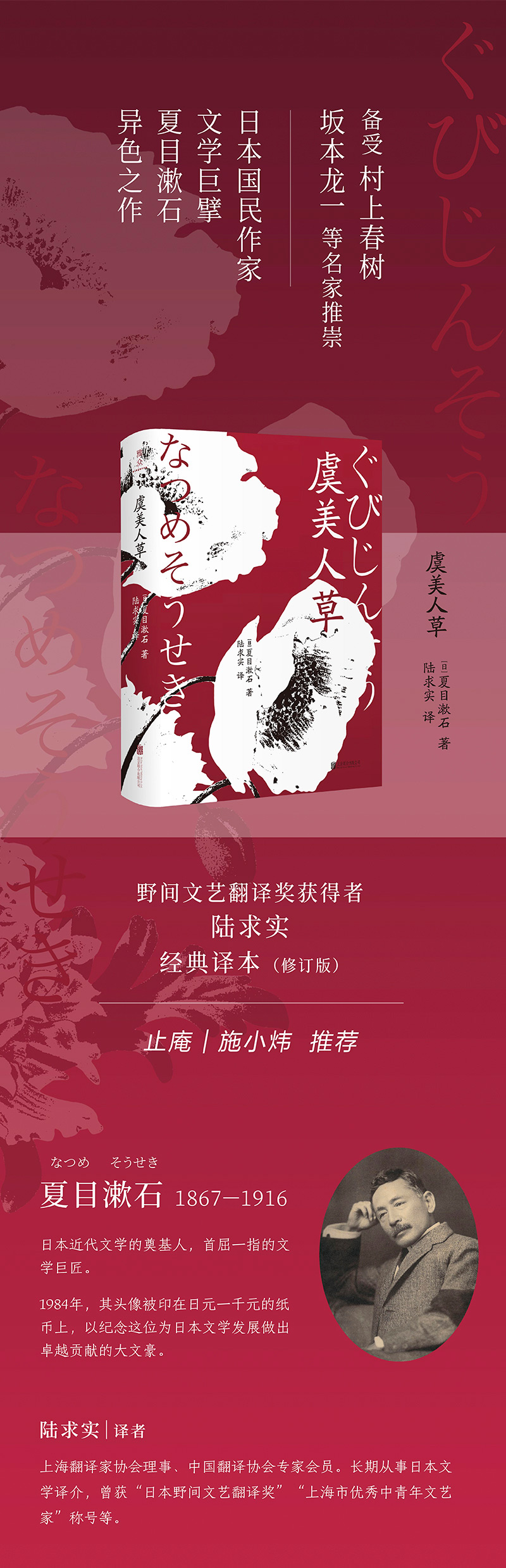 止庵、施小炜推荐当人问我喜欢的日本作家时,漱石这个名字总是立马出现在我的脑中。——村上春树