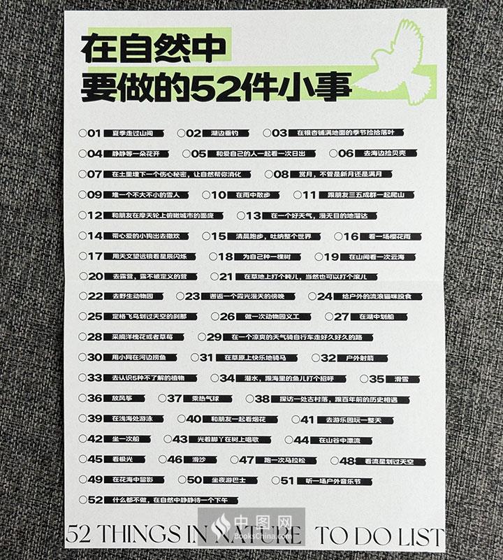 ★随书附赠吊牌式两用书签,可挂在植物间为自然发出无声呐喊;还有户外打卡海报,记录人生中美好的52件小事。