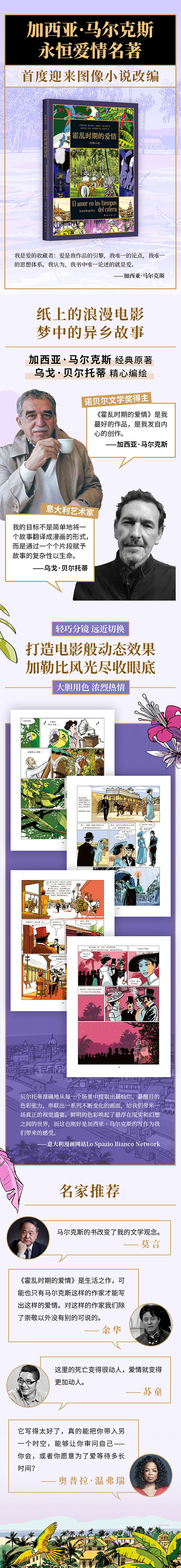 ❤贝尔托蒂准确地从每一个场景中提取出蕞灿烂、蕞醒目的色彩张力,串联出一系列不断变化的画面,给我们带来一场真正的视觉盛宴。鲜明的色彩唤起了悬浮在现实和幻想之间的世界,而这也刚好是加西亚·马尔克斯的写作为我们带来的感受。——意大利漫画网站LoSpazioBiancoNetwork