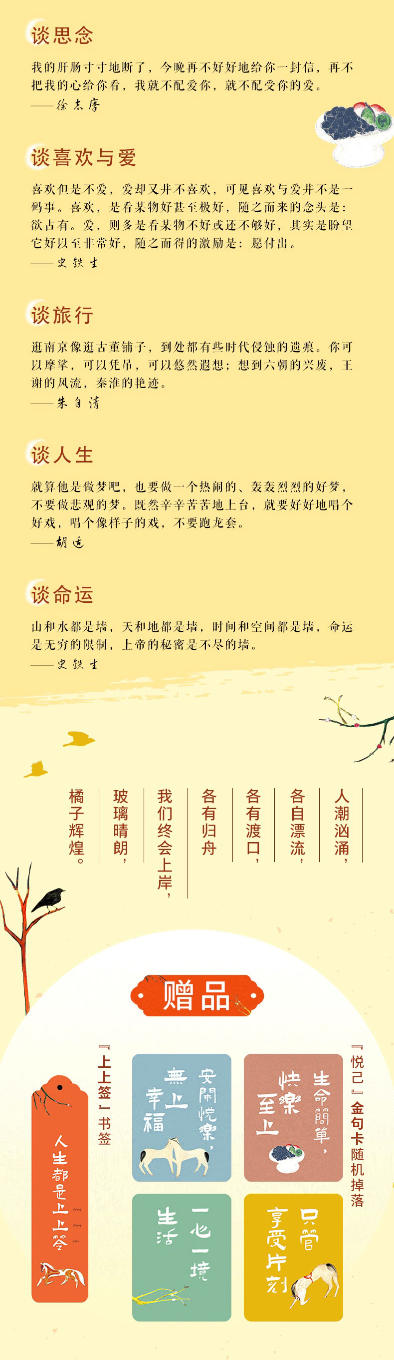 6、随书附赠“人生都是上上签”书签,“悦己”金句卡随机掉落。