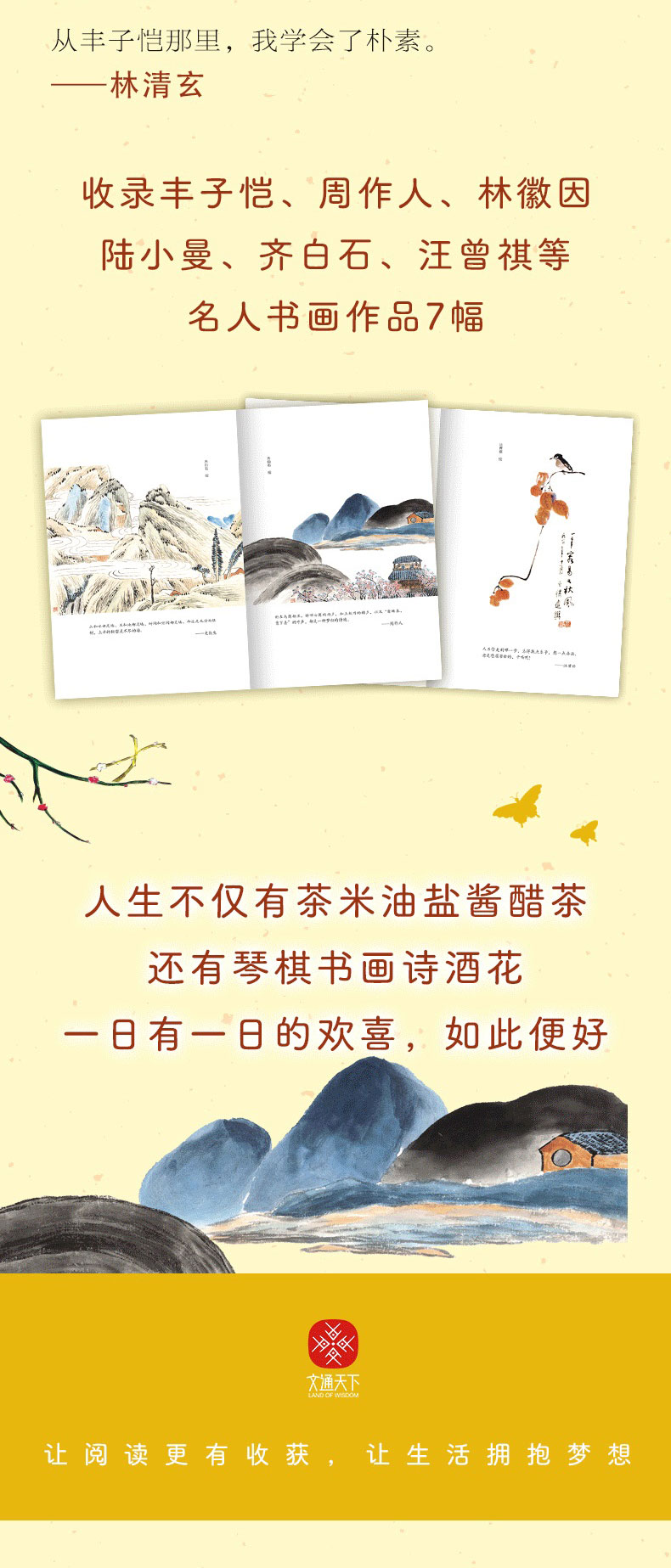 4、收录丰子恺、周作人、林徽因、陆小曼、齐白石、汪曾祺等名人书画作品7幅。
