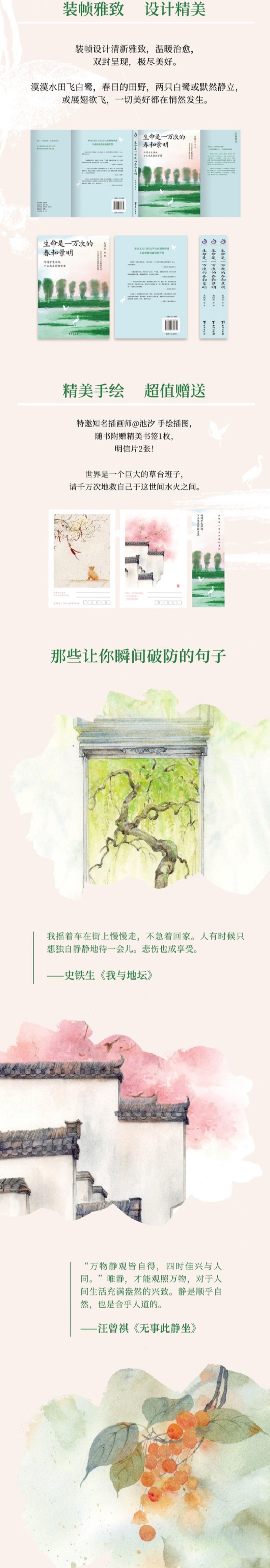 ★ 装帧设计清新雅致,温暖治愈,双封呈现,极尽美好。特邀知名插画师@池汐 手绘插图,随书附赠精美书签1枚,明信片2张!