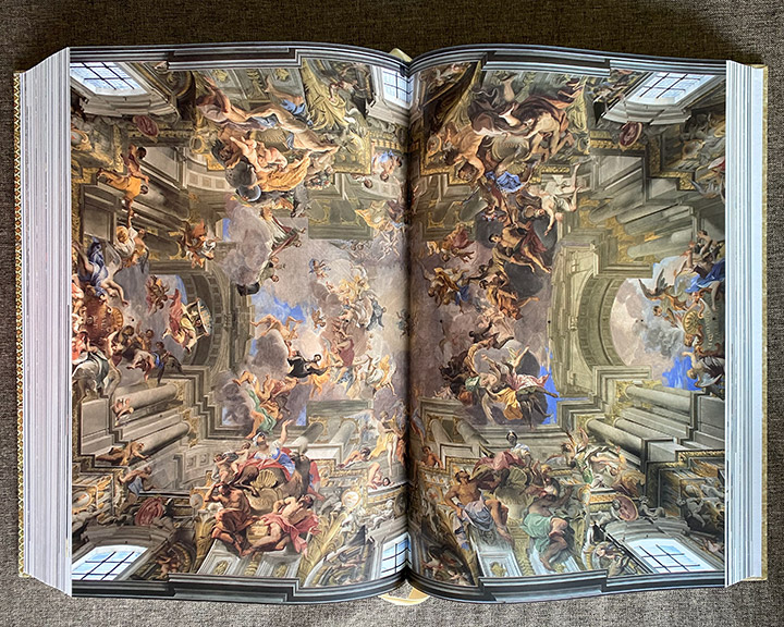 针对“本书有何特别之处”这一问题,我的回答是:“细节放大”。对于巨幅艺术品,我们先展现其全貌,而后针对精彩的细部尽可能放大。而对于一些举世闻名的教堂建筑,摄影师则选取独特的拍摄角度。以奥图·华格纳设计的圣利奥波德教堂为例,我们先拍摄了圣坛全景,而后将镜头向下移动并且拉近,拍摄金色华盖的非凡气派,翻过这一页,我们用一个跨页的篇幅近距离展现天使的形象。《神圣艺术》中对维斯教堂天顶画的呈现将更加有力地印证“细节放大”这一拍摄手法所产生的神奇效果。此巨幅天顶画作品中人物众多,极具魅力,画家将绘画和室内装饰元素相互结合,创造出3d的视觉效果,这一绘画手法若不借助“细节放大”的拍摄手段,根本无从发现或展示。《神圣艺术》在编辑过程中所坚持的另一个理念是“跨页单元”,在诠释一个主题时,我们往往会使用一个或多个连续的跨页,将文字、图片和背景资料汇集在一起,增强主题的独立性。