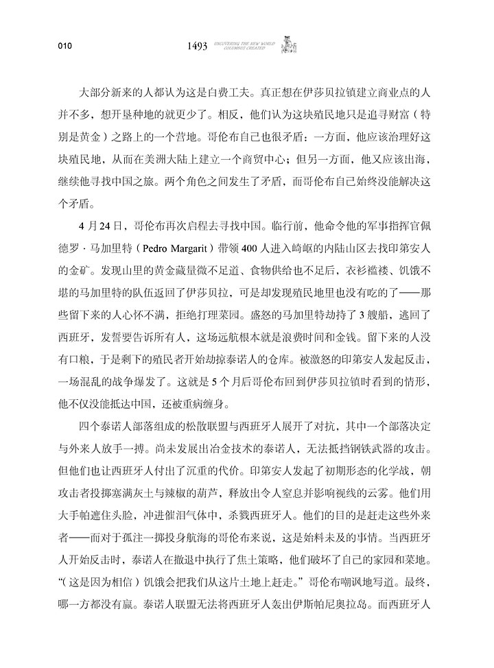 长途贸易已经持续了一千多年,其中多数是横跨印度洋的。几个世纪以来,中国通过丝绸之路向地中海地区输出丝绸,对于那些成功走完丝绸之路的人来说,这条漫长商路虽危机四伏却也回报丰厚。然而,过去还没有出现过发展得如此迅速、蓬勃的全球贸易。以前既没有涵盖东、西两个半球的贸易网络;地球这边发生的事件,也不可能干扰另一边的社会进程。通过建立伊莎贝拉镇,哥伦布拉开了欧洲长期占领美洲的序幕。此举也让他开启了全球化的时代,这是一个独一无二、势不可挡的商品与服务贸易的交换,如今它的影响已波及世界上任何一个有人居住的地方。
