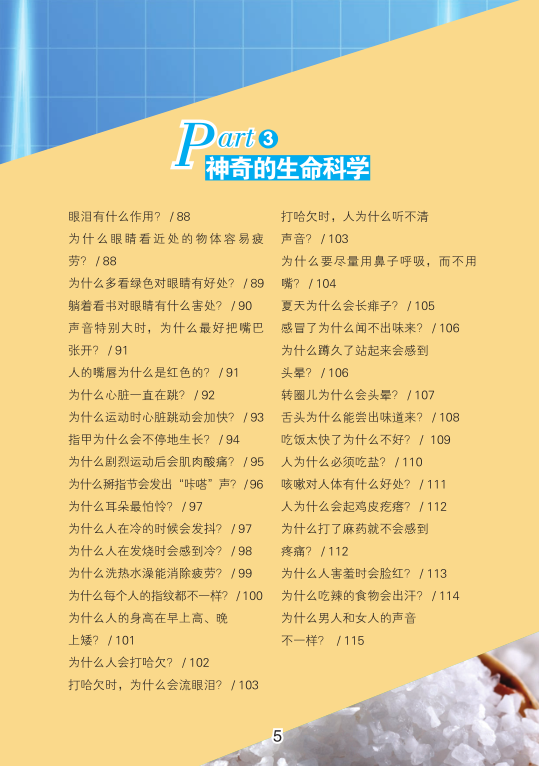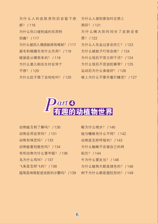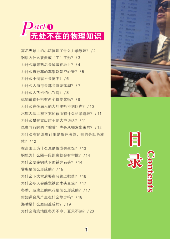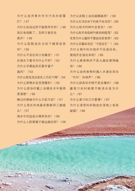 科学是无处不在的,在日常生活中,只要我们稍稍留意就会发现许多有趣的科学现象。科学是人类社会发展与进步的阶梯,它把人类一个又一个征服自然的梦想变成了现实。生活中处处有科学,它们有的是存在于植物、动物中的生物科学,有的是藏身于器物、天气中的物理科学,还有的是表现在人体中的人体科学。然而,就是这些星星点点、零零碎碎的科学揽尽万千秘趣,为我们解读了全面的科学知识。放眼古今,人类的每一次跳跃,都离不开科学力量的推动,科学使人类生活变得更高效。一切知识的源泉来源于生活。当生活折射出来的智慧激发出求知者的探究热情,那么求知者便会迸发出灵感。自然界和生活中的神奇现象太多了,所以每个热爱思考的人都可能是科学之路上的发现者、人类文明史上的领航人。