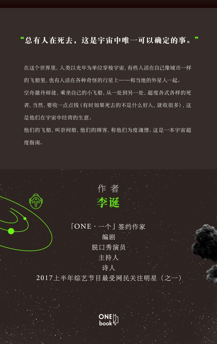 本书是一部脑洞大开、想象力丰富的科幻作品, 时间定在未来, 地点是在宇宙无尽的空间, 主人公空舟与澈丹师徒乘坐着一艘名为“奈何船”的飞船, 漫游在星际宇宙之间。即使身处辽阔的宇宙, 死亡也是一件无法避免的事情, 而生命终结的方式并不止一种。