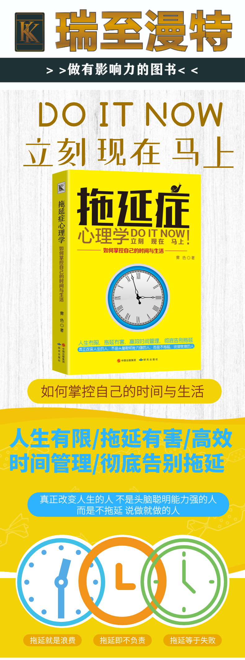 大多数人都有拖延症,他们总是安慰自己:反正不忙,还有时间,明天再说。明日复明日,明日何其多,他们每一次都用完美的理由说服自己,拖到最后除了遗憾再无其他。解码拖延症,告别拖延,你会更加优秀。