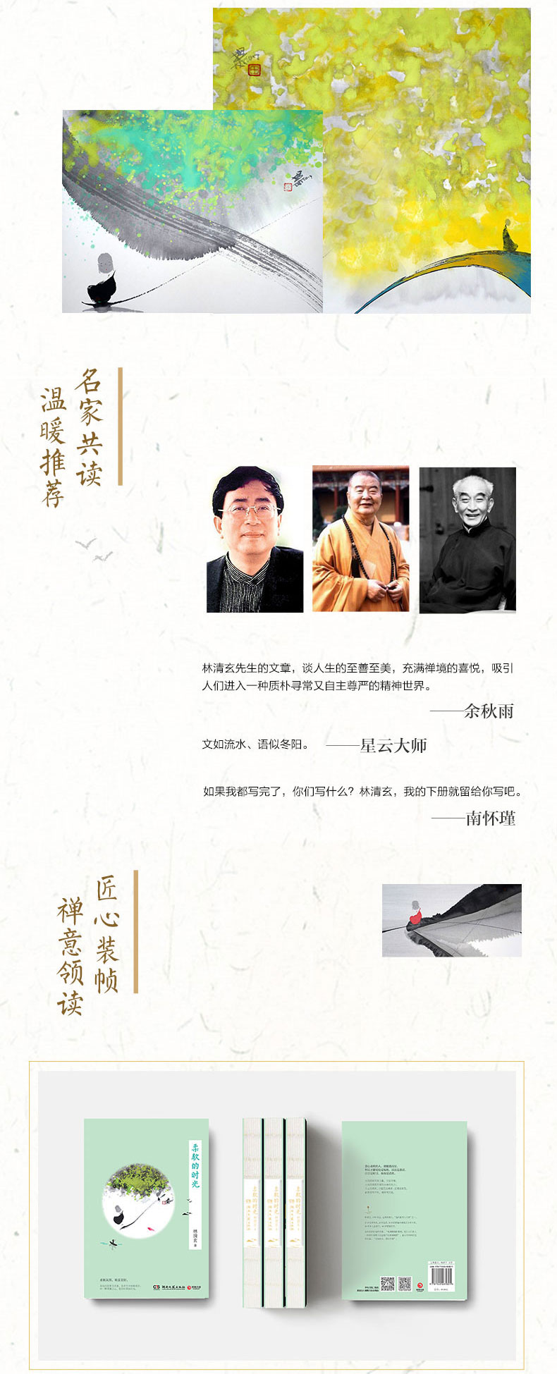 “充满禅境的喜悦,吸引人们进入一种质朴寻常又自主尊严的精神境界。”余秋雨、星云大师、南怀瑾、于丹、张德芬等阅读好评。