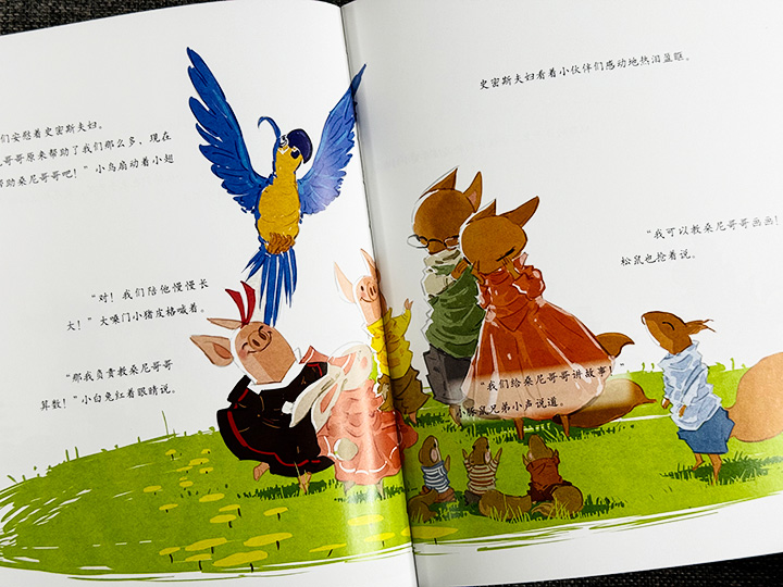 小松鼠布鲁不喜欢和其他小动物说话,因为爸爸妈妈也不喜欢和布鲁说话。他把自己关在屋子里,一直画个没完。怎么办?爸爸妈妈很着急,找来小动物们寻求帮助,小猪叫布鲁一起吃美味的果酱,小兔子叫布鲁跳舞,鹦鹉叫布鲁唱歌……