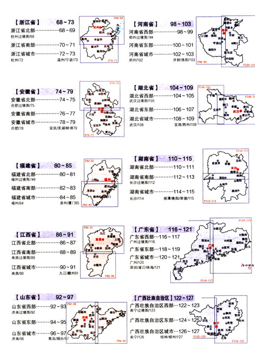 本书标注了各省区的国家高速公路、省级高速公路、国道、省道和县道的名称、编号及里程,高速公路出入口、服务区等道路附属设施;城市图较详细地表示了大中城市的各级干线道路,以及政府、机关、宾馆、饭店、学校、医院等地标性物体。省内主要城镇间里程表及国道里程表,可为广大司机查阅里程,规划佳路线提供参考。