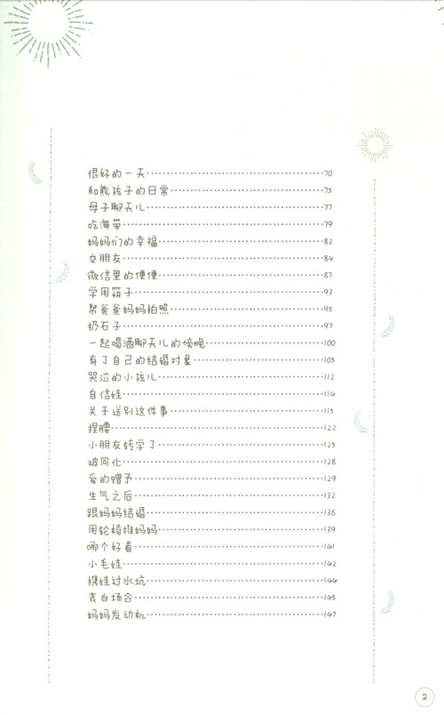 苏苏的漫画细腻而温柔,轻轻叩击柔软的心房,让为人父母者,莞尔一笑,却又回味隽永。书中这些幽默生动的亲子小故事,暖暖的,萌萌的,对于在育儿生涯中疲惫又幸福的妈妈们来说,很治愈!