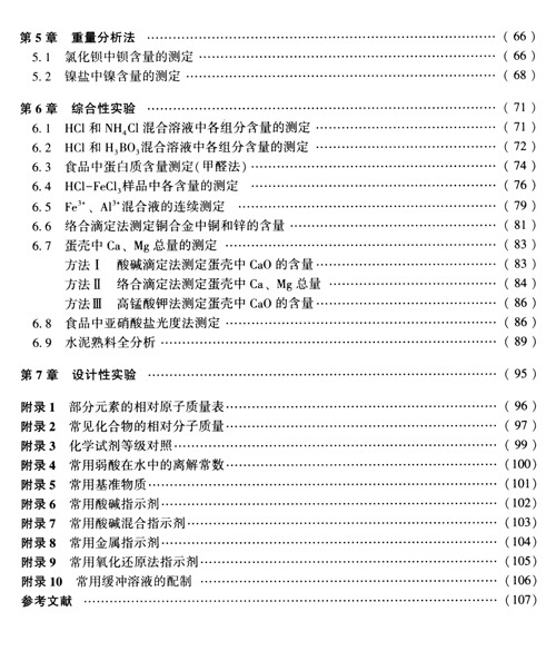 分析化学实验是分析化学课程教学的重要环节,也是一门建立准确”量”的概念的基础课程,在培养学生实验基本技能、实践能力、科学素质以及增强学生的创新意识等方面都起着重要作用。本教材保留了原有讲义的基础性,并做了大量的补充。在实验项目的编排上,改变了以往单一传授技能训练的模式,由浅入深,循序渐进,逐步提高。原理阐述清晰,实验步骤和注意事项叙述详细,使学生在实验前的预习质量得到一定的保证。通过实验,使学生能够掌握第一的分析化学实验技能和方法,牢固树立”量”的概念,具备一定的开拓创新的能力,学会科学思维方法,为后继课程的学习和今后从事科研和生产工作打下扎实的基础。