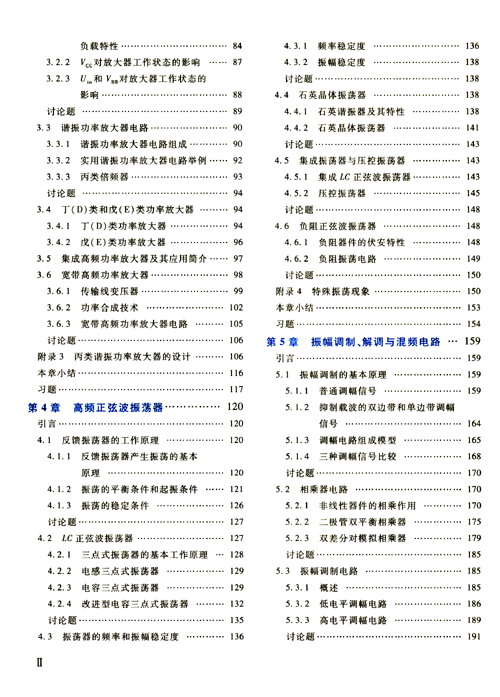 《高频电子线路(第2版)》是在第1版的基础上,汲取多方面的建议,以满足现代无线通信所需的高频电子线路知识结构和应用能力为教学目标,并参考教育部高等学校电子信息科学与电气信息类基础课程教学指导分委员会制定的“电子线路Ⅱ课程教学基本要求”修订而成。全书含绪论、高频小信号放大器、高频功率放大器、高频正弦波振荡器、振幅调制解调与混频电路、角度调制与解调电路、反馈控制电路、高频电路的数字化与系统设计共八章。每节后有讨论题,每章有引言、附录、小结和习题,书末给出部分习题参考答案。附录为拓展性内容,介绍当前主流芯片及其应用实例、基于S参数的射频电路设计方法和当前主流的相关新技术。全书采用双色套印,将重要概念和结论采用蓝色,将图中需要注意或区别之处也采用蓝色,以突出重点,提高可读性。与《高频电子线路(第2版)》配套出版有《高频电子线路学习指导与习题解答》。 《高频电子线路(第2版)》采用自顶向下的模式,按照系统一模块一电路一改进电路一集成芯片一应用实例的思路组织内容;力求精选内容、用工程观点删繁就简,突出重点,夯实基础,注重应用性和先进性,强化学以致用能力的训练,因此《高频电子线路(第2版)》具有易懂、实用的特点。 《高频电子线路(第2版)》可作为高等院校电子信息类、测控技术与仪器等专业的教材或教学参考书,也可供有关工程技术人员参考。