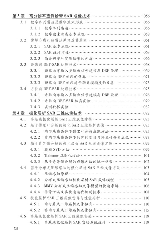本书以数字阵列合成孔径雷达( SAR)的高分辨对地侦察应用为背景,系统 阐述了数字阵列SAR的发展历程和最新进展,着重研究了基于数字阵列SAR 的三种新型成像模式:高分辨率宽测绘带SAR( HRWS-SAR)成像、极化层析 SAR三维成像和前视SAR成像。书中给出了大量的仿真实验、轨道实验和机栽 实验,结果印证了相关理论分析的正确性。 本书概括了数字阵列合成孔径雷达的最新进展,物理概念清晰,公式推导严 谨、简明,大量内容都取材于作者团队处理的实测数据实验,理论联系实际,是一 本新模式雷达领域前沿探索性著作。 本书的主要读者对象为从事雷达系统、微波遥感等领域研究、设计和应用的 工程技术人员,可供广大从事雷达领域研究的研究生以及工程技术研究人员参 考,同时也可作为高等院校相关专业研究生的教科书或参考书。