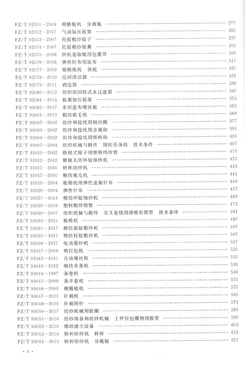 本书收录了截至2018年6月发布的现行纺织行业标准中有关纺纱机械、非造布机械以及纺织机械专用零部件、器材等127项产品标准。