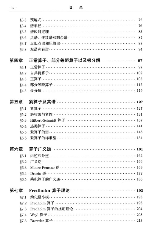 《Hilbert空间上的广义逆算子与Fredholm算子》介绍Hilbert空间上有界线性算子的基本理论,主要讨论紧算子、正常算子、部分等距算子、广义逆算子、Fredholm算予以及根关性质等,从而引出算子广义逆的表示、算子广义逆的逆序律以及Weyl定理等前沿问题。 《Hilbert空间上的广义逆算子与Fredholm算子》可作为数学专业研究生或高年级本科生的教材或参考书,也可供相关专业的教师或科研人员参考。
