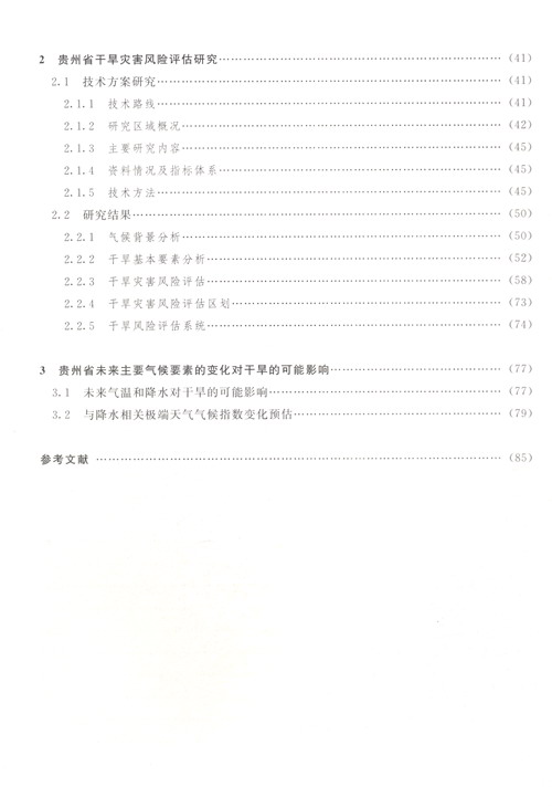 贵州地处亚热带季风气候区,常年雨量充沛,但由于其特殊的喀斯特地形地貌特征和降水时空分布不均,干旱灾害时有发生。为了有效地服务于贵州现代生态文明建设,贵州省气候中心根据灾害风险管理的需求,在国家发展和改革委员会、贵州省发展和改革委员会、贵州省科技厅的大力资助下,针对发生干旱灾害的大气环流特征、指标体系构建、风险评估与区划以及未来气候变化趋势等方面,做了大量的分析研究工作,相关成果还获得了2017年贵州省科技进步奖。作者在此基础上编著形成了《贵州省干旱灾害风险评估及其气候预估》一书。 《贵州省干旱灾害风险评估及其气候预估》是一部具有地方特色的专业书籍,内容丰富,实用性强。该书的出版,可为贵州省各级政府和生产部门在制定干旱灾害防御和减灾措施等方面提供基础支撑,为地方经济社会发展的中长期发展规划提供决策依据,同时也可为兄弟省(区、市)开展相关方面的工作提供参考。