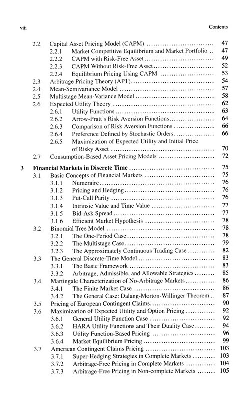 本书由浅入深、全面系统地介绍金融数学基本理论, 着重介绍鞅方法在未定权益定价和对冲中的应用。内容包含离散时间投资组合选择理论和金融市场模型, Black-Scholes模型及其修正, 奇异期权的定价和对冲, It过程和扩散过程模型, 利率期限结构模型, 最优投资组合与投资-消费策略, 静态风险度量。本书第四章系统讲述了It随机分析理论, 这是金融数学中鞅方法的理论基础。该章可以作为概率论研究生学习It随机分析的简明教材。