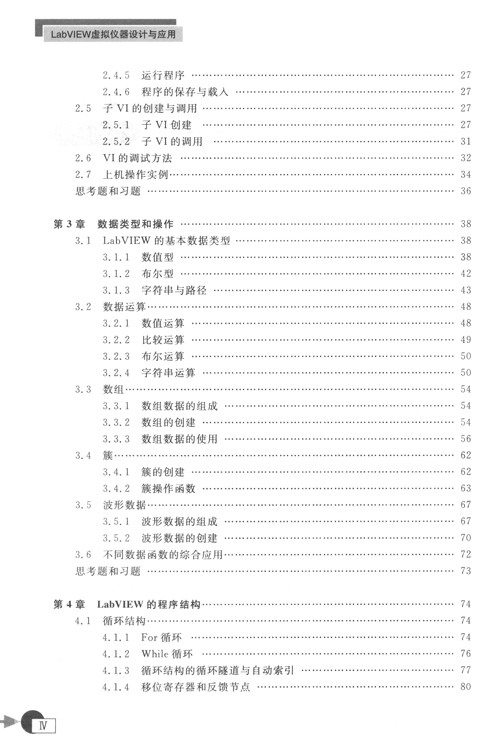 《LabVIEW虚拟仪器设计与应用》通过理论与实例相结合,实训练习相配合的方式,介绍了利用LabVIEW进行虚拟仪器设计的方法与技巧。全书共分为11章,包括虚拟仪器基础、LabVIEW编程环境、LabVIEW基本操作、LabVIEW数据类型及操作、程序结构、图形与图表显示、文件I/O、信号分析与处理、数据采集、网络与通信编程、LabVIEW常用编程技巧等章节。全书提供了大量的编程实例,可以让读者更快捷地掌握相应的内容。 《LabVIEW虚拟仪器设计与应用》适合作为高等院校虚拟仪器等相关课程的教材或教学参考书,也可以作为相关工程技术人员的参考用书。