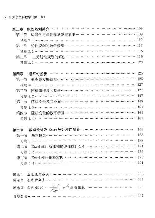 本书是根据文科学生的需要而编写的比较简明扼要的一本教材。全书分为五个部分:函数极限与微积分 、线性代数、线性规划简介、概率论初步、数理统计及Excel统计应用简介。全书例题丰富,每节后均配有适当数量的习题。