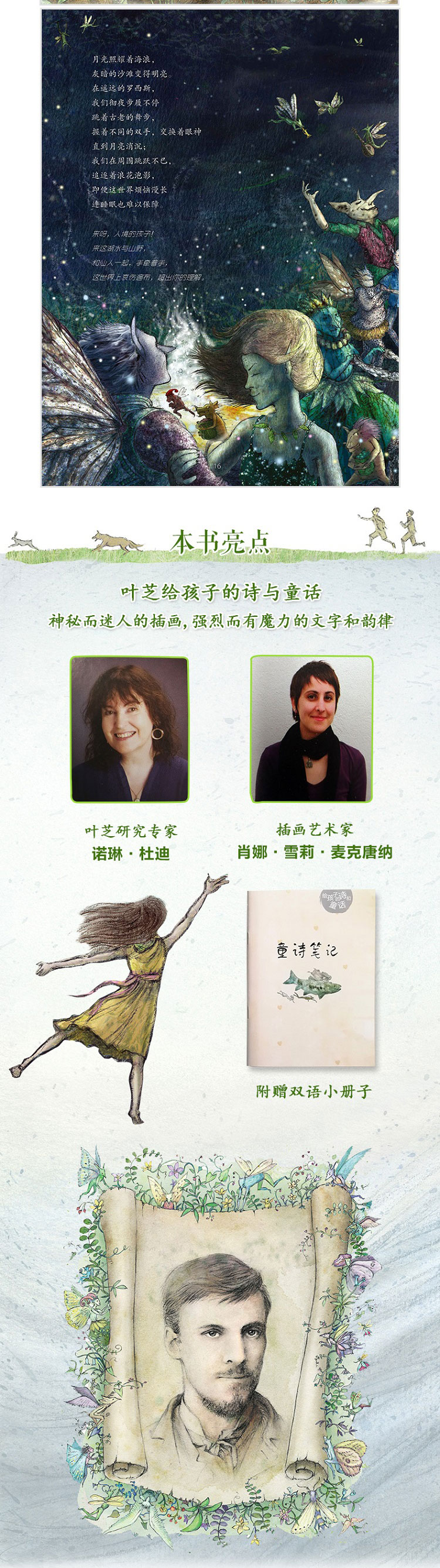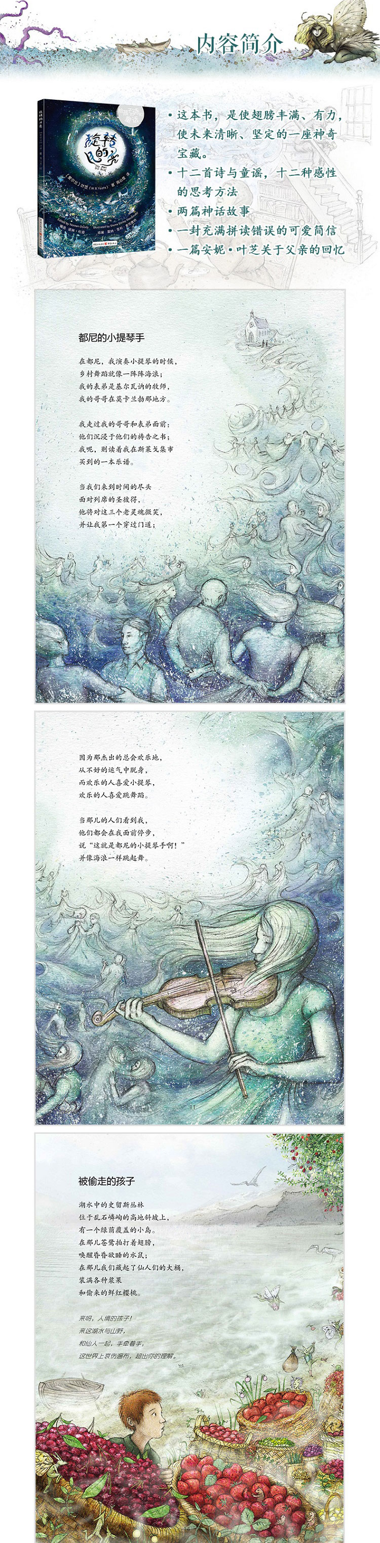 全书语言澄澈,意象丰美,将对大自然的好奇探索与恣意瑰丽的想象融为一体,同时配以大量精美插画,完美再现了诗人笔下神秘而美丽的童真世界。
