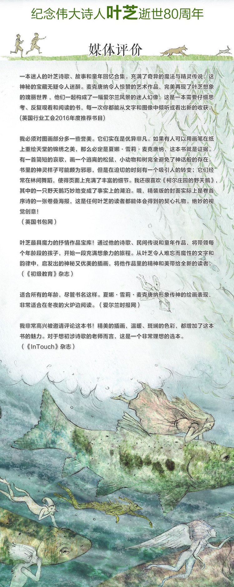 本书是叶芝专门为孩子们创作的,在中国首次出版,能让孩子们体会到这位爱尔兰国宝级诗人对自然的细致观察,令人惊讶的想象,并从中得到爱与智慧的启蒙。